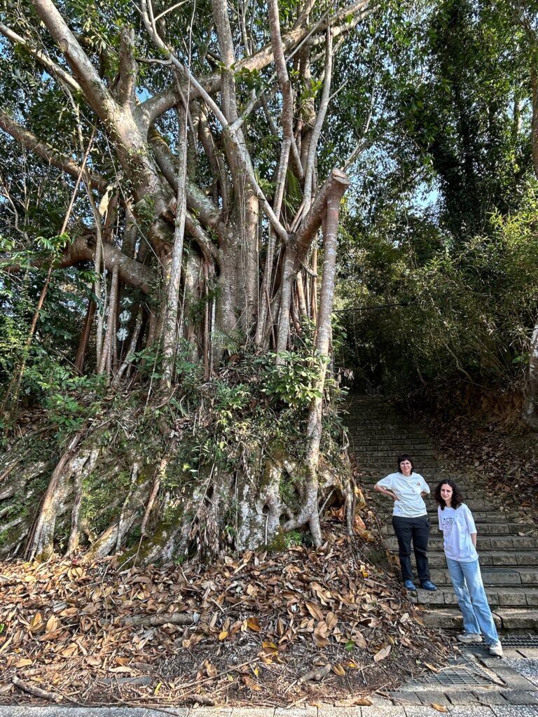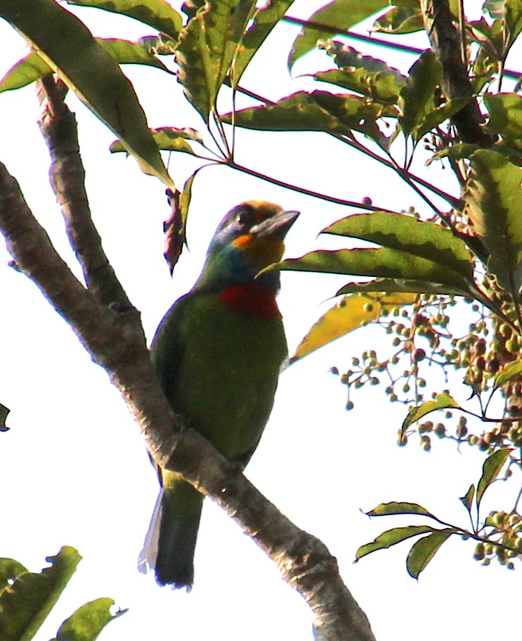 Durante todo el recorrido del descenso escuchamos el raro y persistente gorjeo del Barbudo de Formosa (Psilopogon nuchalis), especie endémica de Taiwán y en riesgo de extinción. Podemos hacerle una foto lejana pero suficiente.
