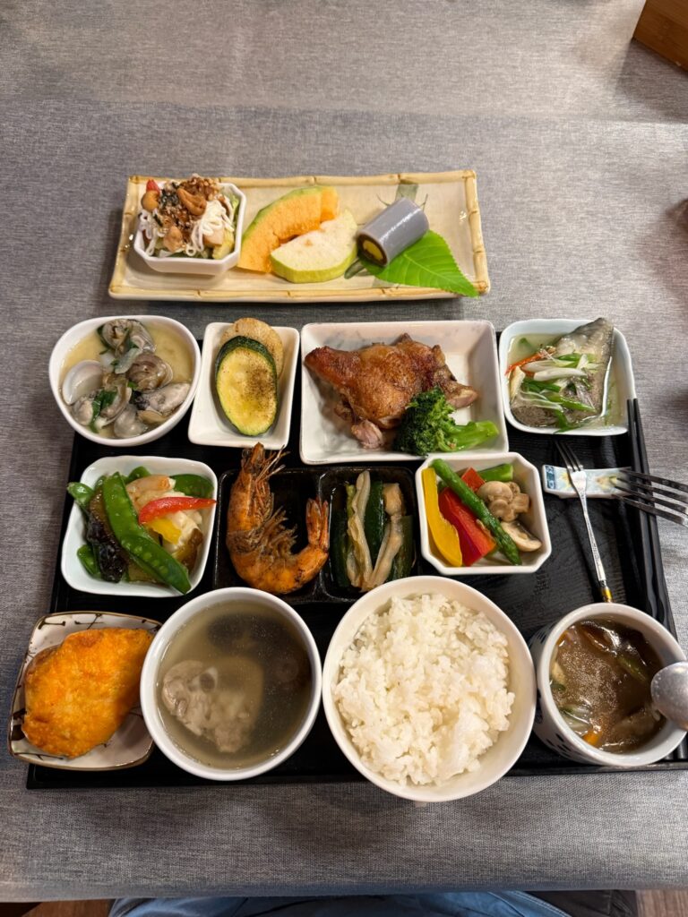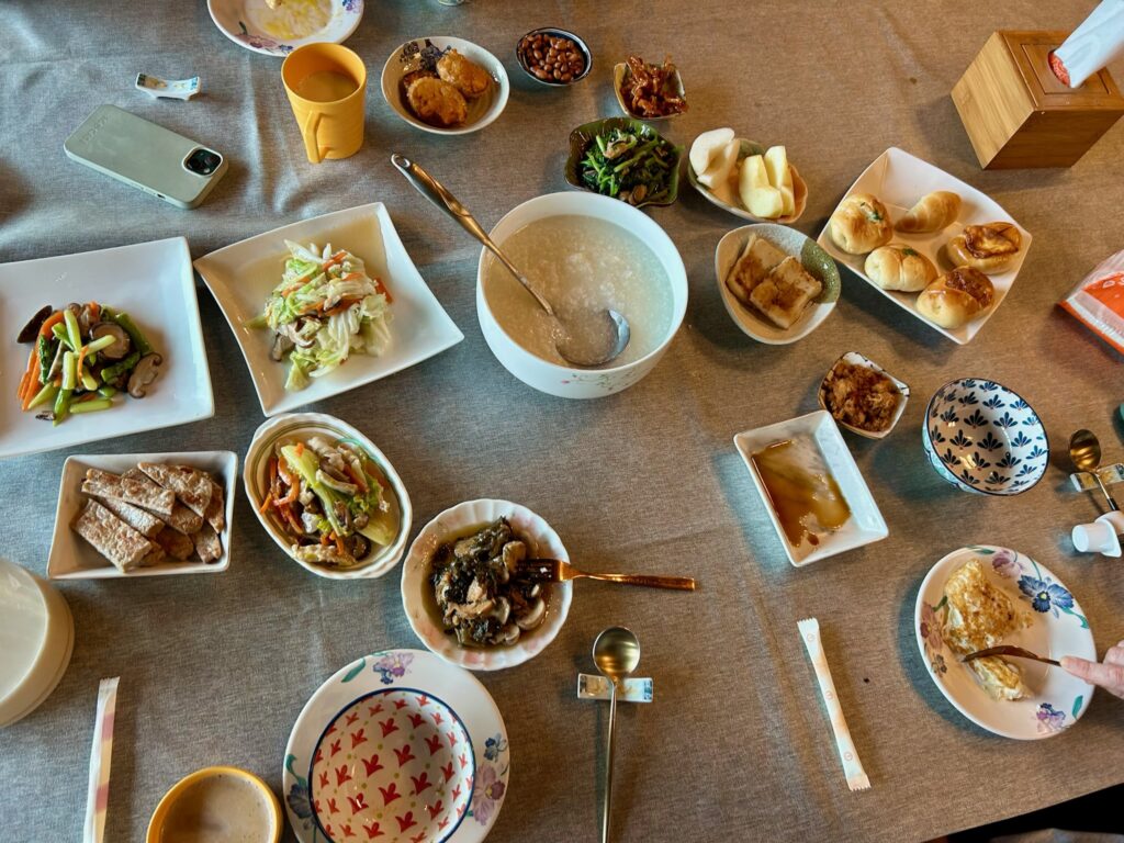 Cenamos en el Five Mountains and Three Water B&B (Shuili) a las 18h. Vaya festival de sabores taiwaneses nos preparan. Juzgad vosotros mismos (ésto es sólo para una de las personas omnívoras):