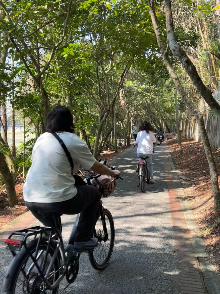 Vamos a Shuishe. Un pueblo ni especialmente bonito ni reseñable pero es centro de diversas actividades en el lago. Insistentes vendedores nos quieren engatusar para hacer un viaje en barco y otros en bici. Nos decantamos por el transporte más humilde pero más sano. Pillamos 3 bicis eléctricas (está bien hacer ejercicio pero no hay que pasarse) para recorrer el camino inverso al que habíamos hecho en coche pero ahora más próximo al lago, mucho más entretenido y bello. A ver que os parece: