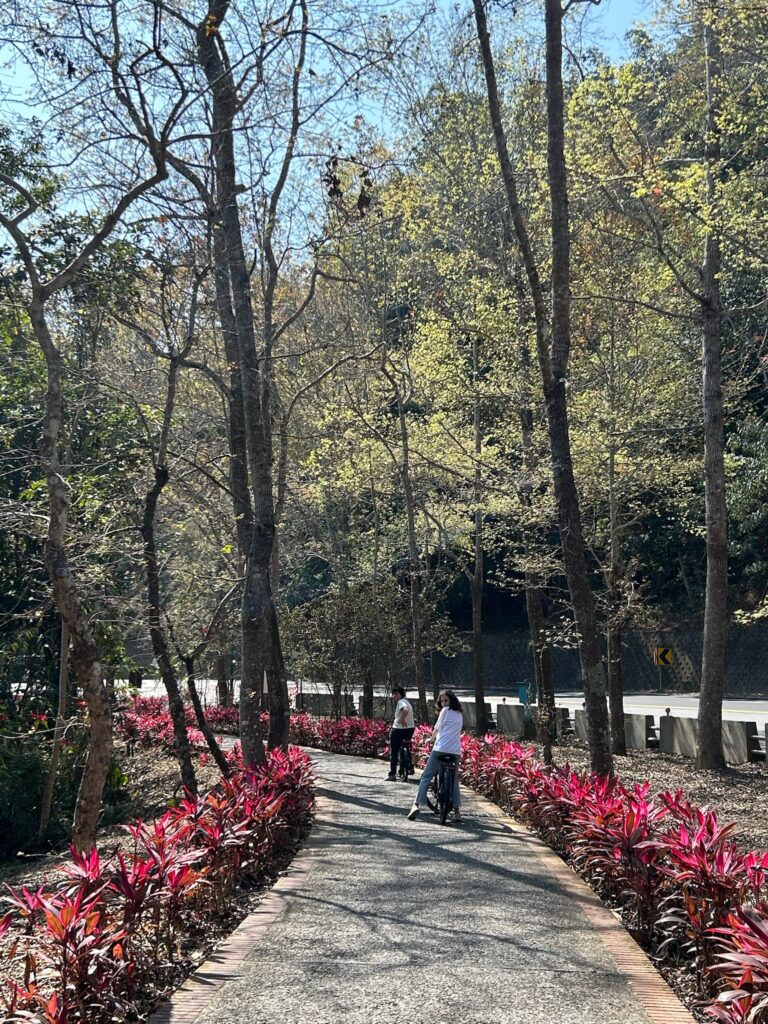 Siguiente parada: Syuanzang Temple, bonito templo construido en 1965 en honor a un importante monje budista (del mismo nombre) del siglo VII. Su estructura está inspirada en antiguas salas y habitaciones de la dinastía Tang (618–907). Desde su terraza hay buenas vistas del lago y alrededores, aunque la cosa mejora aún más desde el siguiente punto, ya lo veréis.