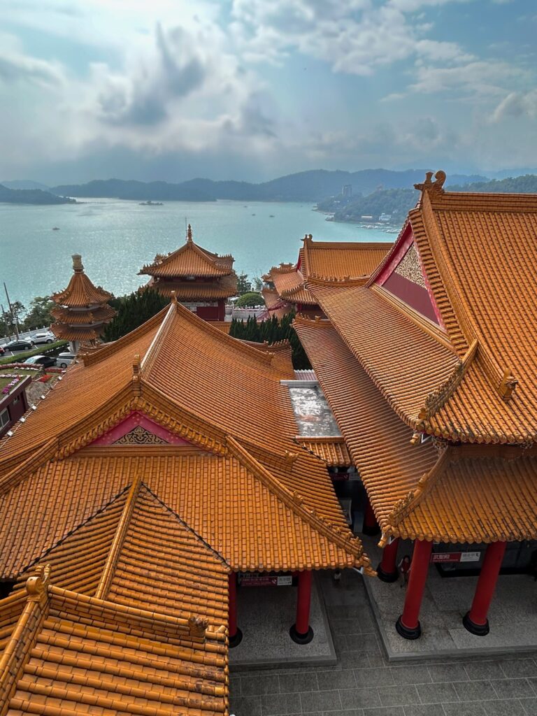 Wenwu Temple. El templo más impresionante de la zona. Un lugar de culto que en su día eran dos templos separados y que tuvieron que ser demolidos al subir el nivel de agua del lago por culpa de los japoneses y su central hidroeléctrica. Tras la desocupación, se volvieron a construir un poco más arriba y se unieron. También han tenido diferentes renovaciones a lo largo de los años. Hay arquitectura china exquisita, con varios salones y decoraciones muy cuidadas, con varios tramos de escaleras que dan acceso a diferentes miradores, mucho más grande de lo que podría pensarse al entrar.
