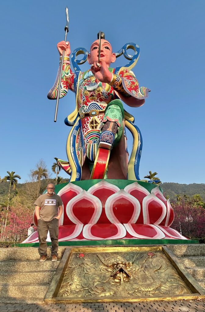 Alejándonos del lago pasamos por la Estatua del tercer príncipe (Nezha), dios protector en el taoísmo, procedente de la mitología budista china. El folclore tradicional Nezha vuela rápidamente sobre sus ruedas de viento por lo que también se le considera el dios tutelar de muchos conductores profesionales, como camiones, taxis o conductores de autobuses turísticos. Suelen colocar una pequeña estatua de Nezha en los vehículos para una conducción segura.
