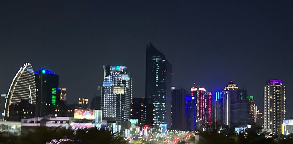 Nos dirigimos a Taipei pero antes de que nos cierren cocinas paramos en Tiachung. Comemos en un hindú, comida excelente pero, para disgusto de algunas comensales, muy picante. Aquí os dejo un "skyline" de esta gran ciudad plagada de rascacielos.