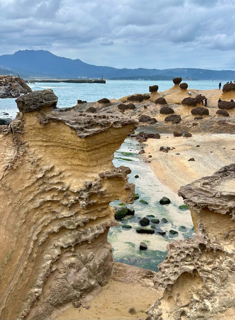 Siguiente visita: Yehliu Geopark, gran atractivo turístico en la costa norte de Taiwán. Es un parque geológico frente al mar famoso, sobretodo, por sus curiosas formaciones rocosas, únicas y súper curiosas que se han ido formando a lo largo de los siglos como resultado de la erosión del viento y el mar. Un auténtico tesoro natural fácilmente accesible.