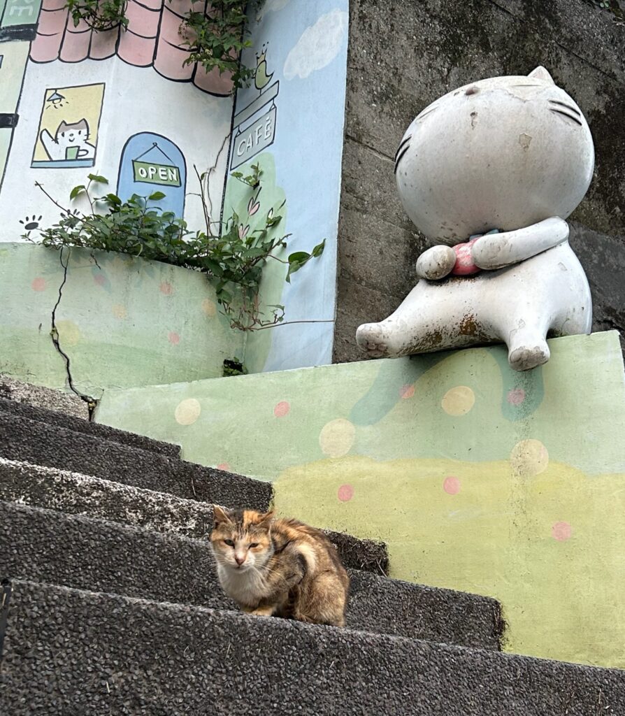 En 2008, un amante de los gatos local organizó una actividad para salvar a los gatos abandonados alrededor del pueblo. Publicaron las fotos de los gatos en línea, lo que generó una abrumadora respuesta de otros amantes de los gatos de todo el país. Pronto, Houtong se convirtió en un centro para los amantes de los gatos a medida que corría la voz, y el número de gatos que vivían allí aumentó, lo que eventualmente revitalizó el pueblo en declive y lo transformó en un destino turístico. Os dejo algunas foticos.
