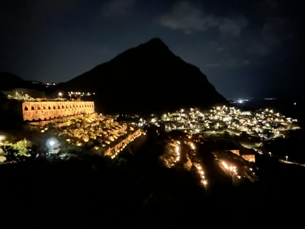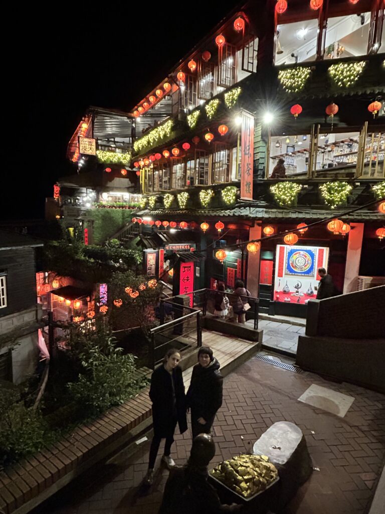 Sin mucha dilación nos dirigimos a Jiufen pero antes el agradable anfitrión nos recomienda visitar la iluminación de las ruinas mineras que resaltan los restos de la refinería de la cueva Shuinan (fundamental en la historia de la industria minera de Taiwán). En septiembre de 2019, Taipower colaboró ​​con Zhou Lian, artista internacional de iluminación, y He Cairou, una joven promesa, en una obra de arte pública llamada "Ilumina las 13 plantas". Las ruinas de los 13 niveles, iluminadas con luces doradas, permiten revivir la majestuosidad de la ciudad dorada de la montaña en tiempos pasados.